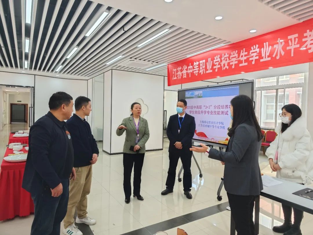 考试期间,相城中专校长马张霞、教学管理处主任谈宏标、教学管理处助理周益锋来到考核现场督查,并与无锡商业职业技术学院老师们交流了学校的专业发展情况。