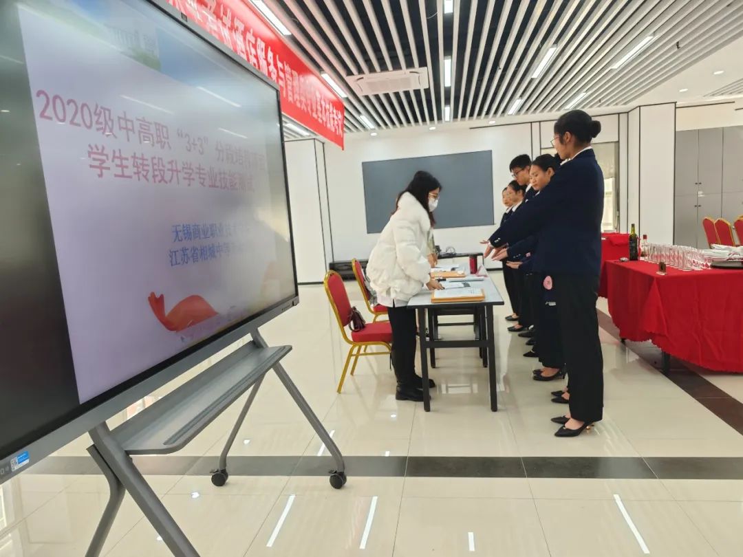 20酒店3+3的同学们以良好的精神面貌、高水平的操作技能、优秀的专业素养赢得了无锡商业职业技术学院老师们的一致赞许,最终全员顺利通过了转段考核。