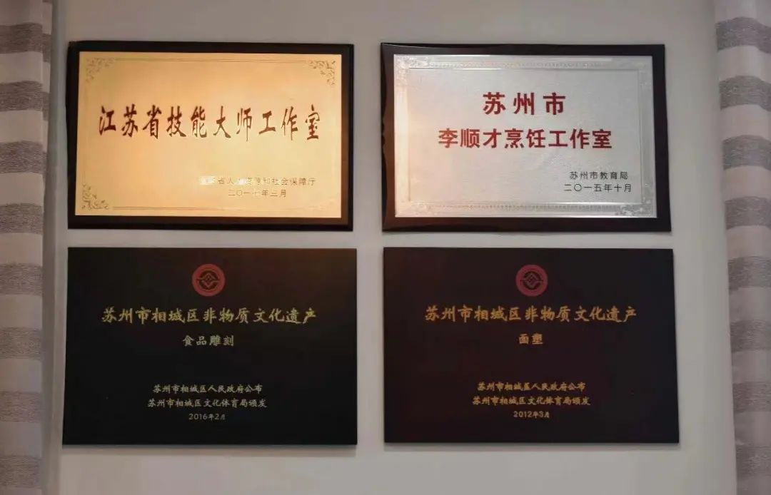 由于兼具业绩和影响力,2017年工作室被江苏省人社厅授予相城区首个“江苏省技能大师工作室”。2018年苏州市人社局又授牌“苏州职业技能竞赛中式烹调项目集训基地”,使之成为相城独有的一张烹饪文化名片。2021年,李顺才更是获评“江苏工匠”,成为相城区首位“江苏工匠”获得者。
